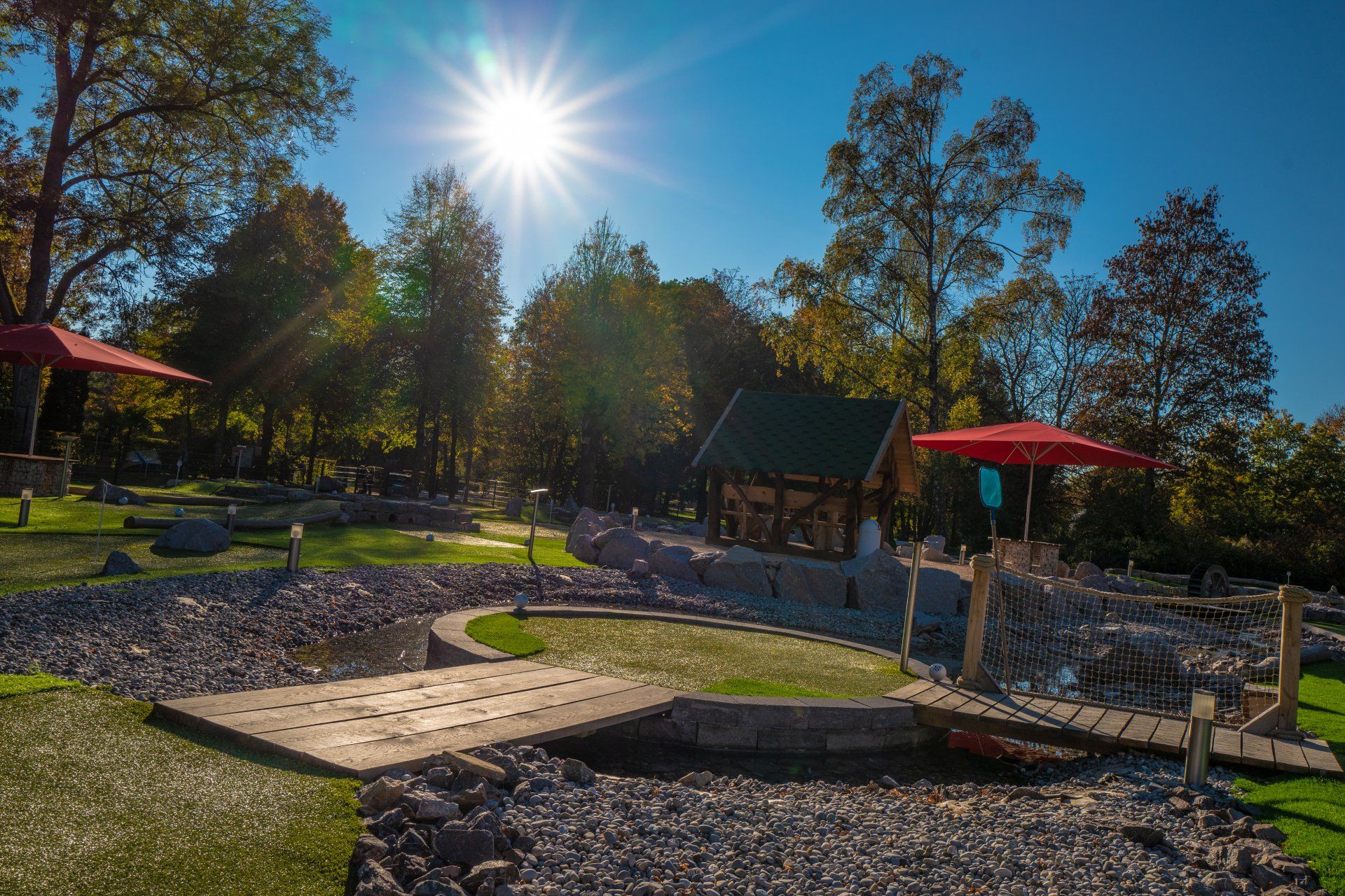 Die Kombination aus natürlichem Gelände und den aus speziellem Kunstrasen bestehenden Greens fühlt sich an, als wäre man auf einem "echten" Golfplatz! Vorkenntnisse sind hierzu übrigens nicht erforderlich. Spiel und Spaß sind somit garantiert! Ein Kiosk mit einem schönen Biergarten lädt zum Erholen ein.